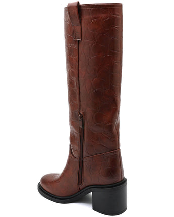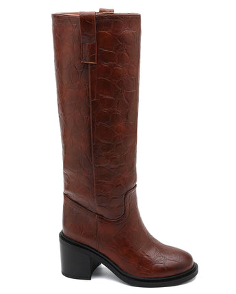 Maak een statement met onze Suuz High Boots. Deze hoge laarzen zijn uitgevoerd in een prachtige croco-look en hebben een stevige blokhak van 6 cm. De perfecte mix van stoer en stijlvol, of je ze nu draagt onder een jurkje of over een skinny jeans.