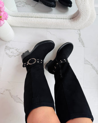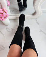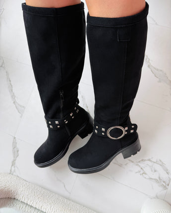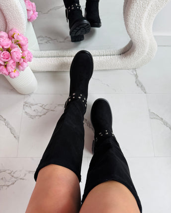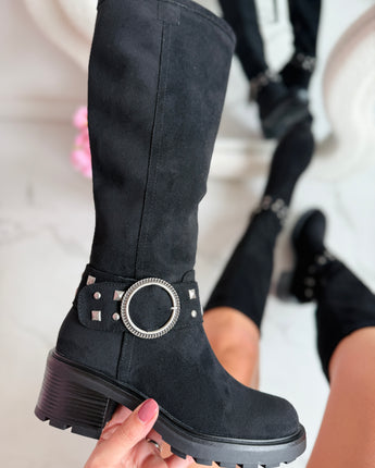 Statement boots nodig? Ontmoet de Tonia High Boots – een perfecte mix van stoer en vrouwelijk. Deze hoge laarzen van zachte suedine zijn afgewerkt met een opvallende gesp en studs rond de enkel voor een edgy touch. Dankzij de stevige hak loop je er niet alleen stijlvol, maar ook comfortabel bij. Verkrijgbaar in tijdloos zwart of warm taupe: welke kleur past bij jouw mood?