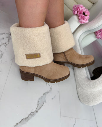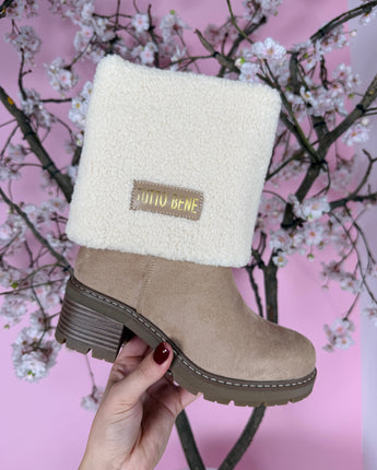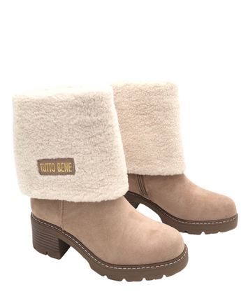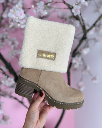 Ontdek de perfecte mix van warmte en stijl met onze Tutto Omslag Boots. Deze hoge boots zijn afgewerkt met een zachte teddy omslag voor een opvallende look. Dankzij de comfortabele hak van 6 cm en het 2 cm plateau ben je verzekerd van een elegante maar stabiele pasvorm.