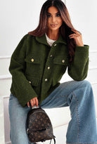 Deze jas is gemaakt van een zachte bouclé-stof met een luxe uitstraling. De gouden knopen en opgestikte zakken zorgen voor een stijlvolle touch, terwijl de iets oversized fit zorgt voor draagcomfort. Verkrijgbaar in meerdere kleuren om jouw look compleet te maken.