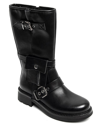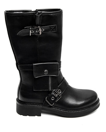 Onze High Bag Boots zijn de perfecte mix van stoer en stijlvol. Deze halfhoge laarzen zijn uitgevoerd in stevig PU-leer en hebben een chunky zool voor extra grip en comfort. De opvallende gespen en het afneembare mini-tasje aan de zijkant geven de boots een edgy touch. Dankzij de ritssluiting aan de binnenzijde trek je ze makkelijk aan en uit. Verkrijgbaar in zwart en bruin.