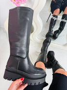 ✔ Zwarte hoge laars met chunky profielzool (De laars is gevoerd)