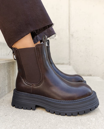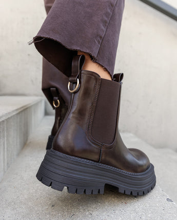 Ontdek de veelzijdigheid van onze yvanka Brown Boots. Deze stoere enkellaarzen combineren een chunky profielzool met subtiele eps details en een warm bruin leren bovenwerk. Dankzij de elastische inzet en ritssluiting trek je ze moeiteloos aan en uit.