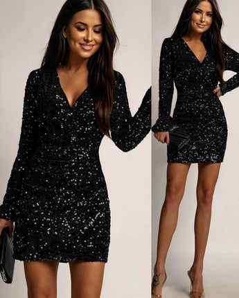 Stylingadvies: Combineer de Party Pailletten Jurk met hoge hakken en een elegante clutch voor een glamoureuze partylook. Voeg subtiele sieraden toe om de sparkle van de jurk te laten stralen.
