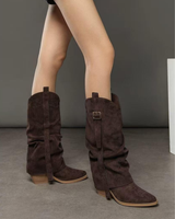 Maak kennis met onze Guusje High Boots – de ultieme combinatie van stijl en flair. Deze boots hebben een elegante hoge schacht met nonchalante slouchy look en een vrouwelijke puntige neus. Dankzij de stevige blokhak van 9,5 cm geef je iedere outfit direct een fashion-forward upgrade.