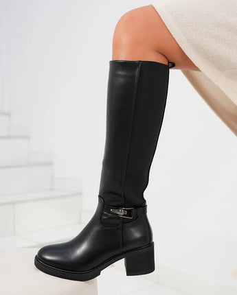 De Helene High Boots combineren tijdloze elegantie met dagelijks comfort. Dankzij de stevige hak van 6 cm en een subtiele platformzool van 2 cm ervaar je de perfecte balans tussen hoogte en stabiliteit. De elastische inzet aan de zijkant zorgt voor een aansluitende pasvorm en extra flexibiliteit, terwijl de decoratieve gesp een stijlvolle touch toevoegt. Perfect te dragen met zowel een jurk als een jeans voor een moeiteloos chique look.
