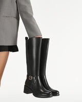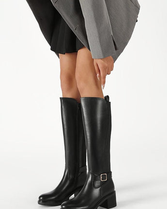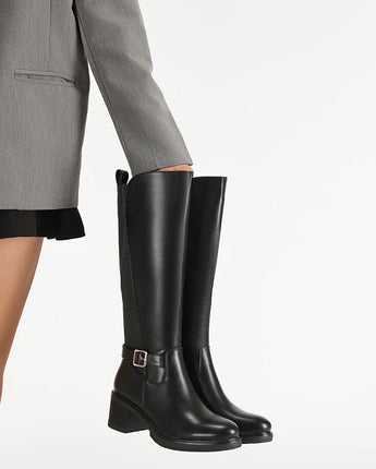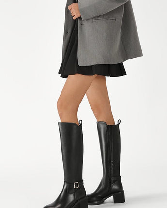 De Monja High Boots zijn perfect voor de koudere dagen. De zachte voering houdt je voeten lekker warm en de stevige hak van 6 cm zorgt voor een mooie houding zonder in te leveren op comfort. Dankzij het elastische inzetstuk sluiten de laarzen goed aan rond de kuit en zitten ze de hele dag prettig. De goudkleurige gesp aan de zijkant geeft de laars een mooi detail. Makkelijk te combineren met een jurk, rok of broek voor een vrouwelijke en dagelijkse look.