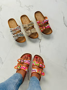 Van deze slippers wordt je toch gelukkig, deze print is helemaal hot deze zomer. Dit zijn de perfecte slippers voor dagelijks gebruik en vrijwel te combineren met iedere outfit. De slippers zijn voorzien van een comfortabele zool en lopen daardoor heerlijk.