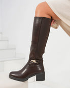 De Helene High Boots combineren tijdloze elegantie met dagelijks comfort. Dankzij de stevige hak van 6 cm en een subtiele platformzool van 2 cm ervaar je de perfecte balans tussen hoogte en stabiliteit. De elastische inzet aan de zijkant zorgt voor een aansluitende pasvorm en extra flexibiliteit, terwijl de decoratieve gesp een stijlvolle touch toevoegt. Perfect te dragen met zowel een jurk als een jeans voor een moeiteloos chique look.