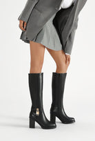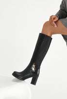De Lock Laars met Hak is perfect voor dagelijks gebruik. De stevige hak zorgt voor een mooie houding en loopt toch comfortabel. De schacht is gemaakt van PU-leather en heeft stretch, waardoor de laars ook goed past bij een bredere kuit. Het goudkleurige slotje aan de zijkant geeft de laars een mooi detail zonder dat het te opvallend is. Makkelijk te dragen onder een jurk, rok of broek.