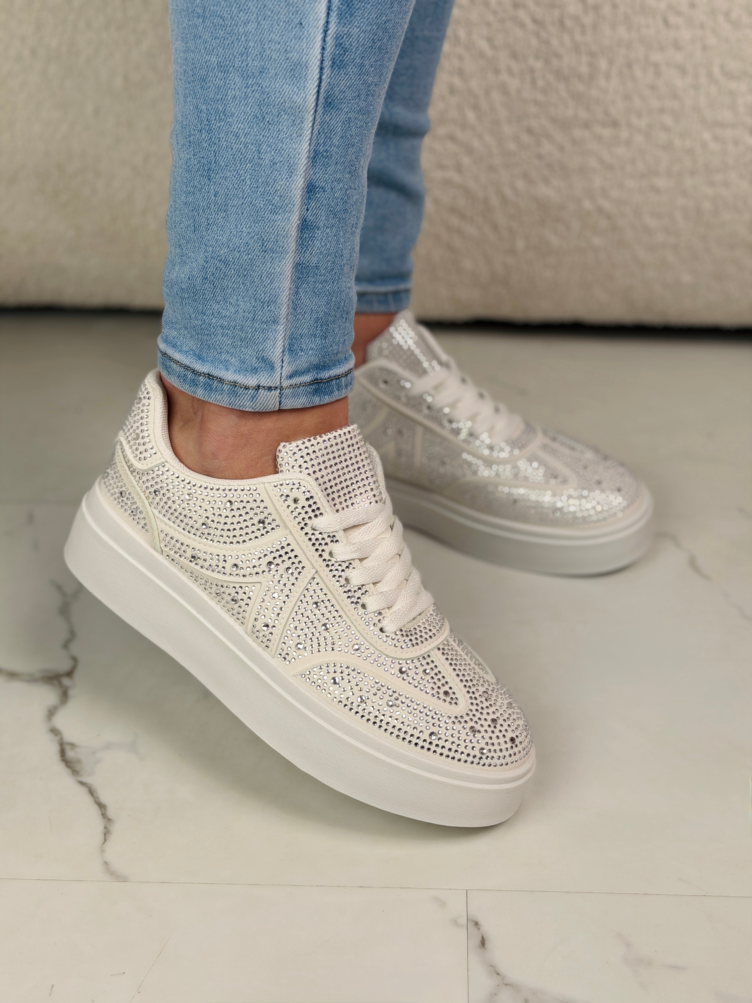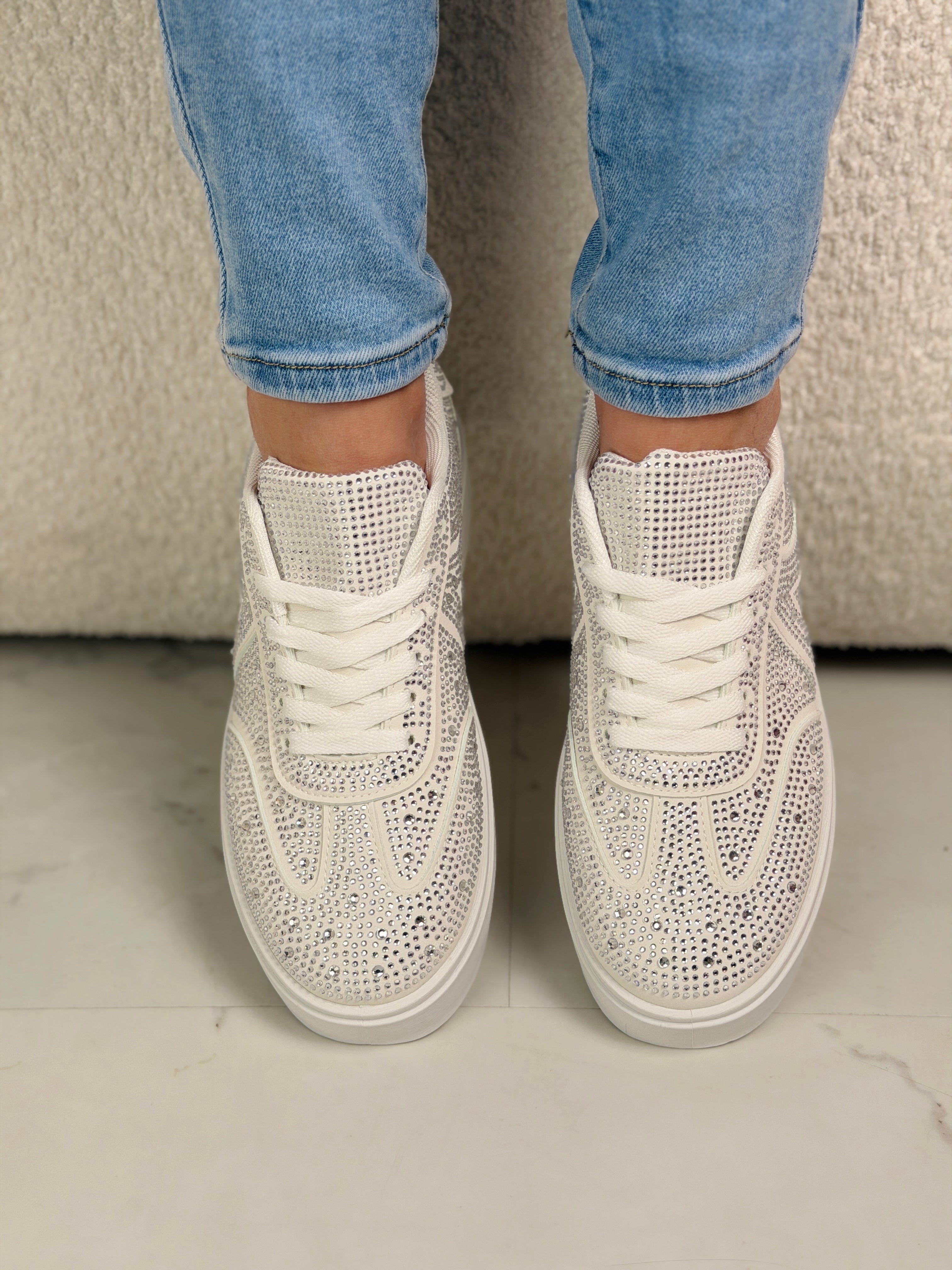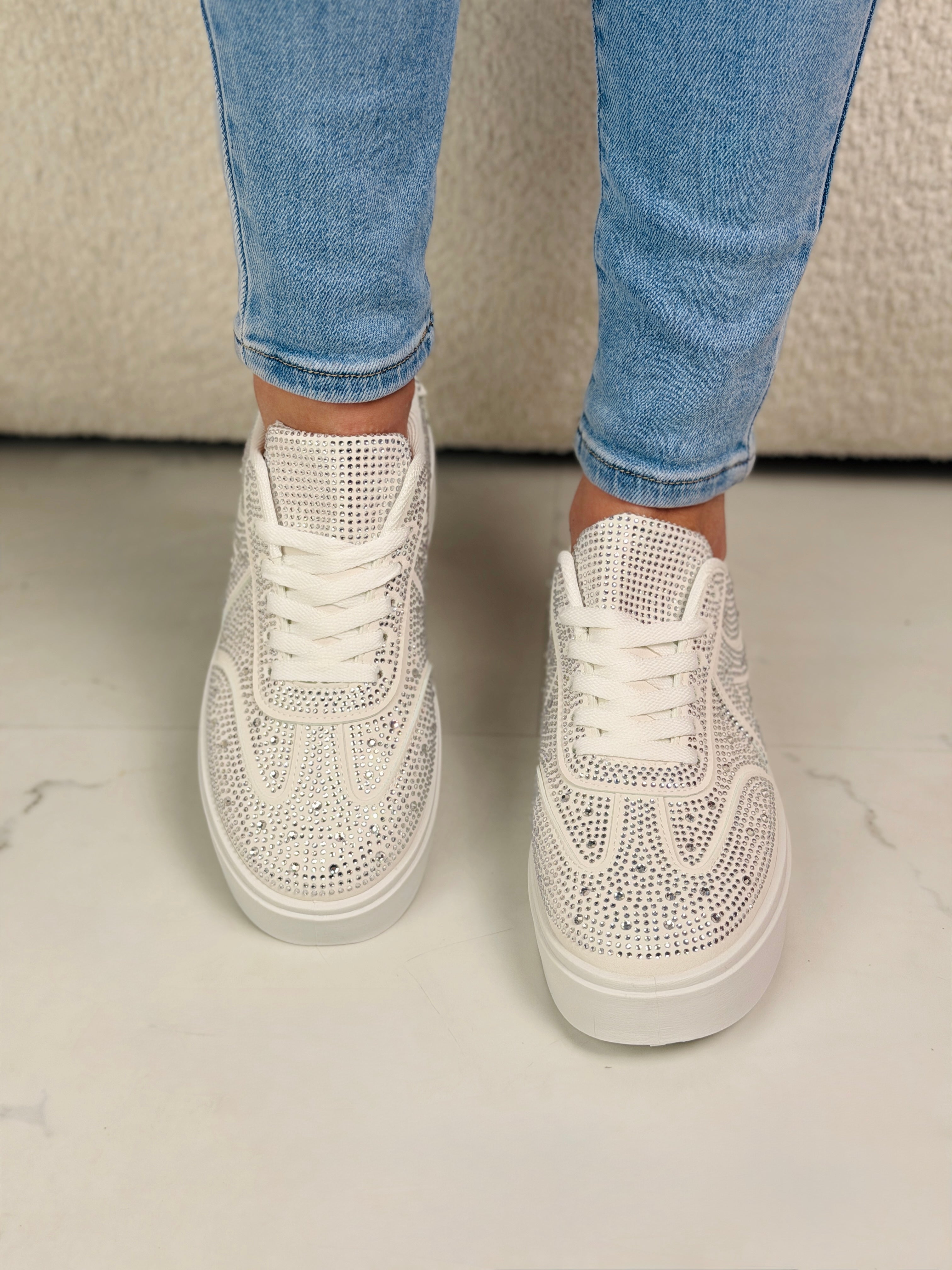 De All Spark Sneaker+ is dé eyecatcher voor elke outfit. Deze trendy sneaker is volledig afgewerkt met sprankelende strass steentjes en heeft een comfortabele, licht verhoogde zool die zorgt voor een moderne en vrouwelijke uitstraling. Perfect voor wie houdt van glamour met een sporty touch.
