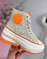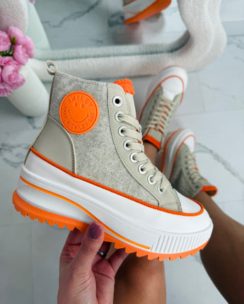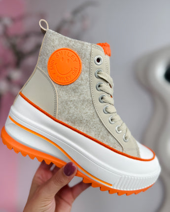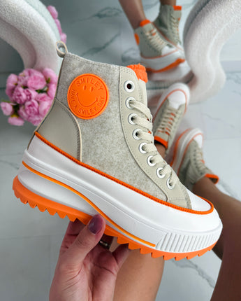De Emoji Sneaker is dé eyecatcher voor je outfit! Deze hoge sneakers combineren comfort met een unieke uitstraling dankzij de vrolijke kleuraccenten en het speelse design. Dankzij de ritssluiting aan de zijkant zijn ze supermakkelijk aan en uit te trekken.