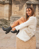 Styling-Tipp: Trage die Monika Boots unter einem Midirock oder einem gestrickten Kleid in warmen Herbsttönen – kein Skinny Jeans mehr, sondern weiche Stoffe und Layering, passend zum Fashion-Trend im Herbst 2025.