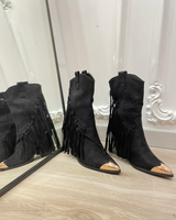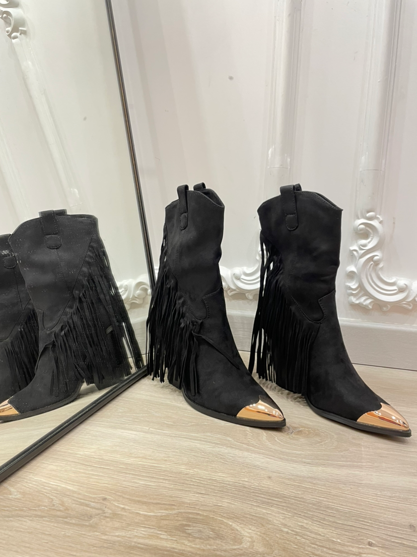 Verleihe deinem Outfit einen coolen Western-Touch mit diesen Stiefeletten mit Fransen und Metallic-Spitze. Stylisch, feminin und Teil unserer 2 Paar für 50 € Aktion!