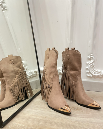 Verleihe deinem Outfit einen coolen Western-Touch mit diesen Stiefeletten mit Fransen und Metallic-Spitze. Stylisch, feminin und Teil unserer 2 Paar für 50 € Aktion!