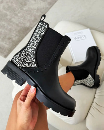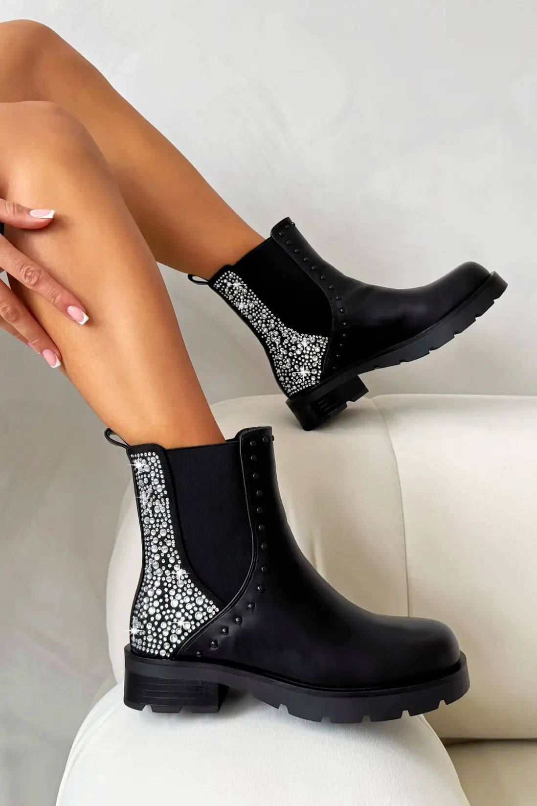 Maak een statement met deze stoere enkellaarzen vol zilverkleurige studs! Ze geven elke outfit een edgy, vrouwelijke touch.