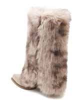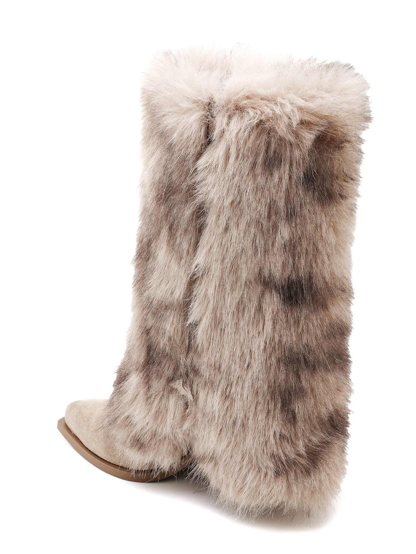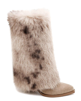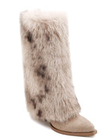 Wärme, Stil und Statement Vibes - de Fury Cover -Stiefel Habe alles. Diese einzigartigen Stiefel sind vollständig mit einer weichen Faux -Pelzabdeckung bedeckt und mit einer Wildlederbasis fertiggestellt. Perfekt für die kälteren Tage und einen echten Augenfänger mit jedem Outfit.