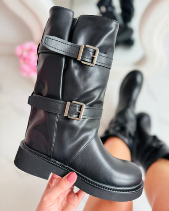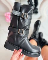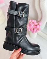 Mit den Nova Buckle Boots setzt du ein stylisches Statement. Die mid-high Boots mit lockerem Slouchy-Fit und dekorativen Schnallen sind der perfekte Mix aus Trend und Komfort. Gefertigt aus weichem Kunstleder mit robuster Sohle – ideal für lässige oder auffällige Outfits.