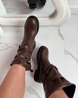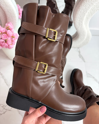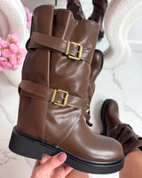 Mit den Nova Buckle Boots setzt du ein stylisches Statement. Die mid-high Boots mit lockerem Slouchy-Fit und dekorativen Schnallen sind der perfekte Mix aus Trend und Komfort. Gefertigt aus weichem Kunstleder mit robuster Sohle – ideal für lässige oder auffällige Outfits.