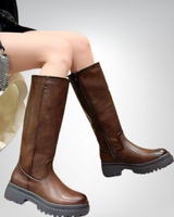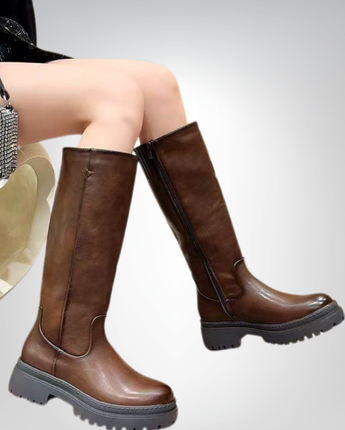 Diese robusten kniehohen Stiefel sind ein absolutes Must-have für die Saison! Aus hochwertigem Kunstleder in dunklem Braun gefertigt, bieten sie mit ihrer profilierten Chunky-Sohle optimalen Halt. Dank des klassischen Designs lassen sie sich vielseitig kombinieren. Der Reißverschluss an der Innenseite sorgt für bequemes An- und Ausziehen.