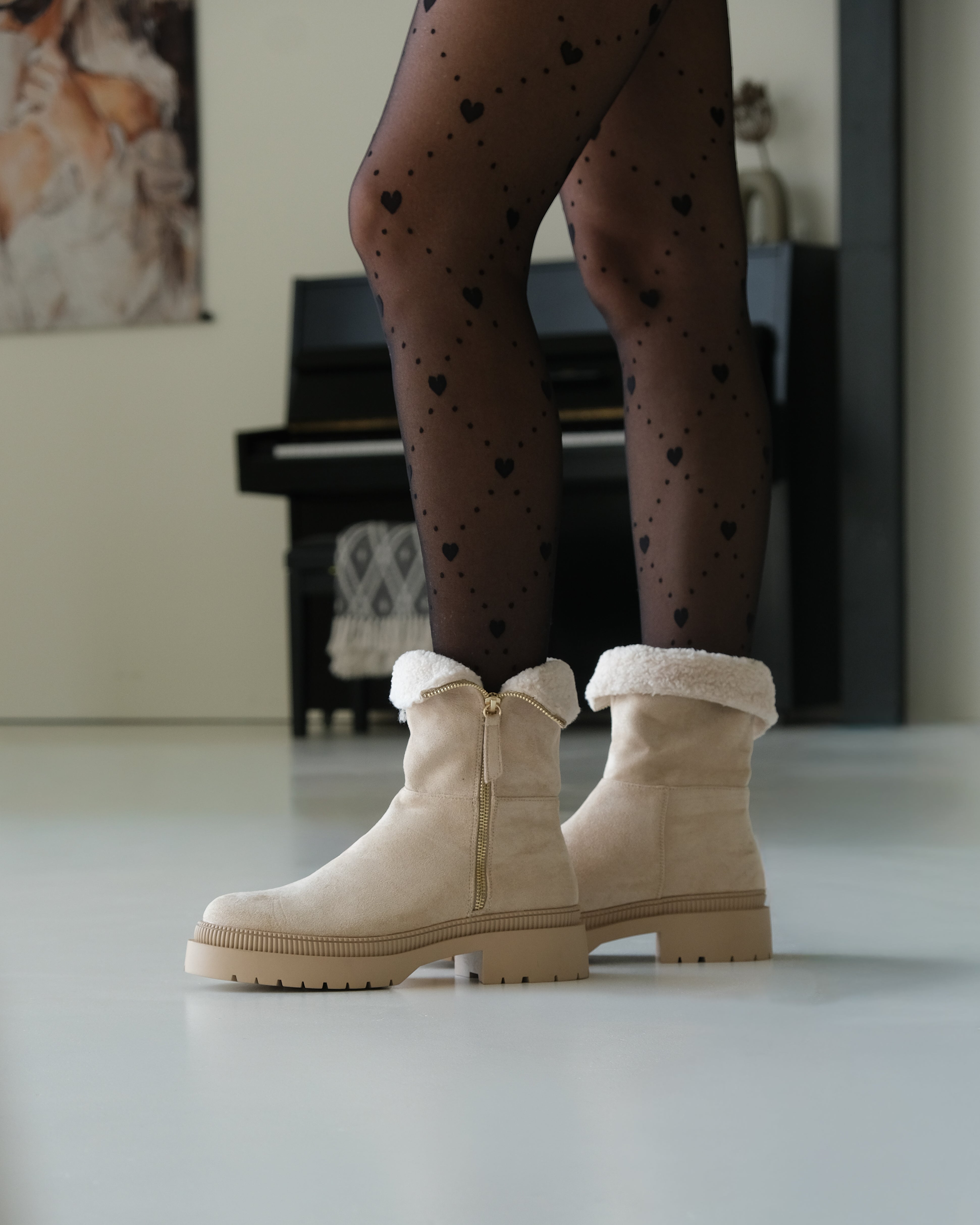 Cozy Beige Zipper Boots