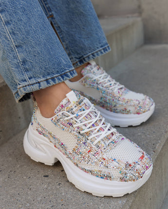 Brillez à chaque pas avec la Glam White Sneaker – une basket blanche tendance, confortable et ornée de strass scintillants. Une touche de glamour à toutes vos tenues.