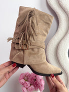 Crafted from soft suedine, the Cody Fringle Boots are available in four beautiful colours: beige, black, brown and khaki. A real statement piece that pairs effortlessly with both casual and dressy looks.