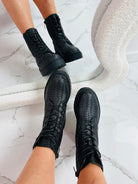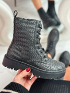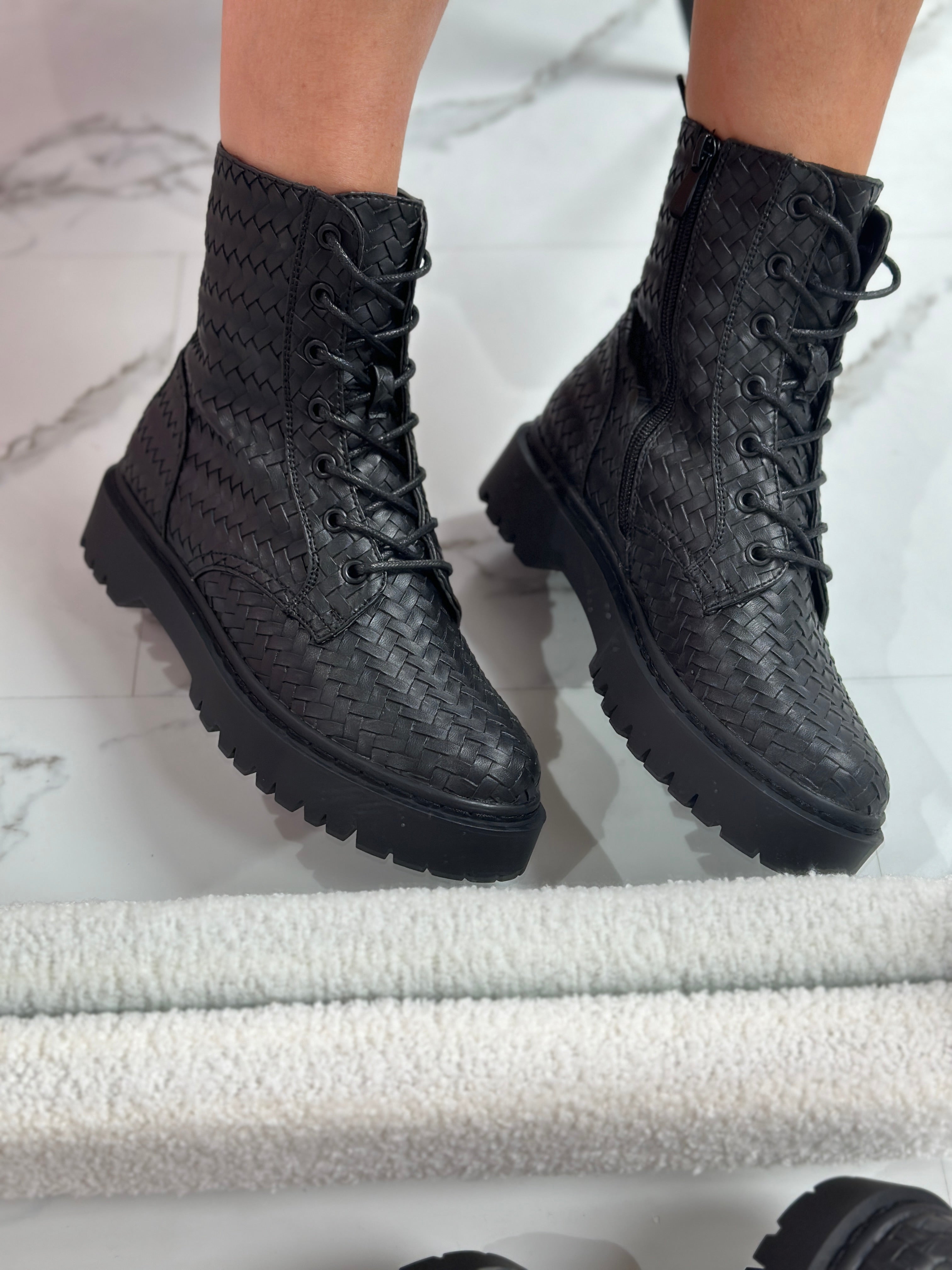 Les Martina Boots sont des bottines à lacets élégantes qui allient confort et style moderne. Leur motif tressé apporte une touche unique et luxueuse. Parfaites pour un usage quotidien et idéales pour donner du caractère à votre tenue.