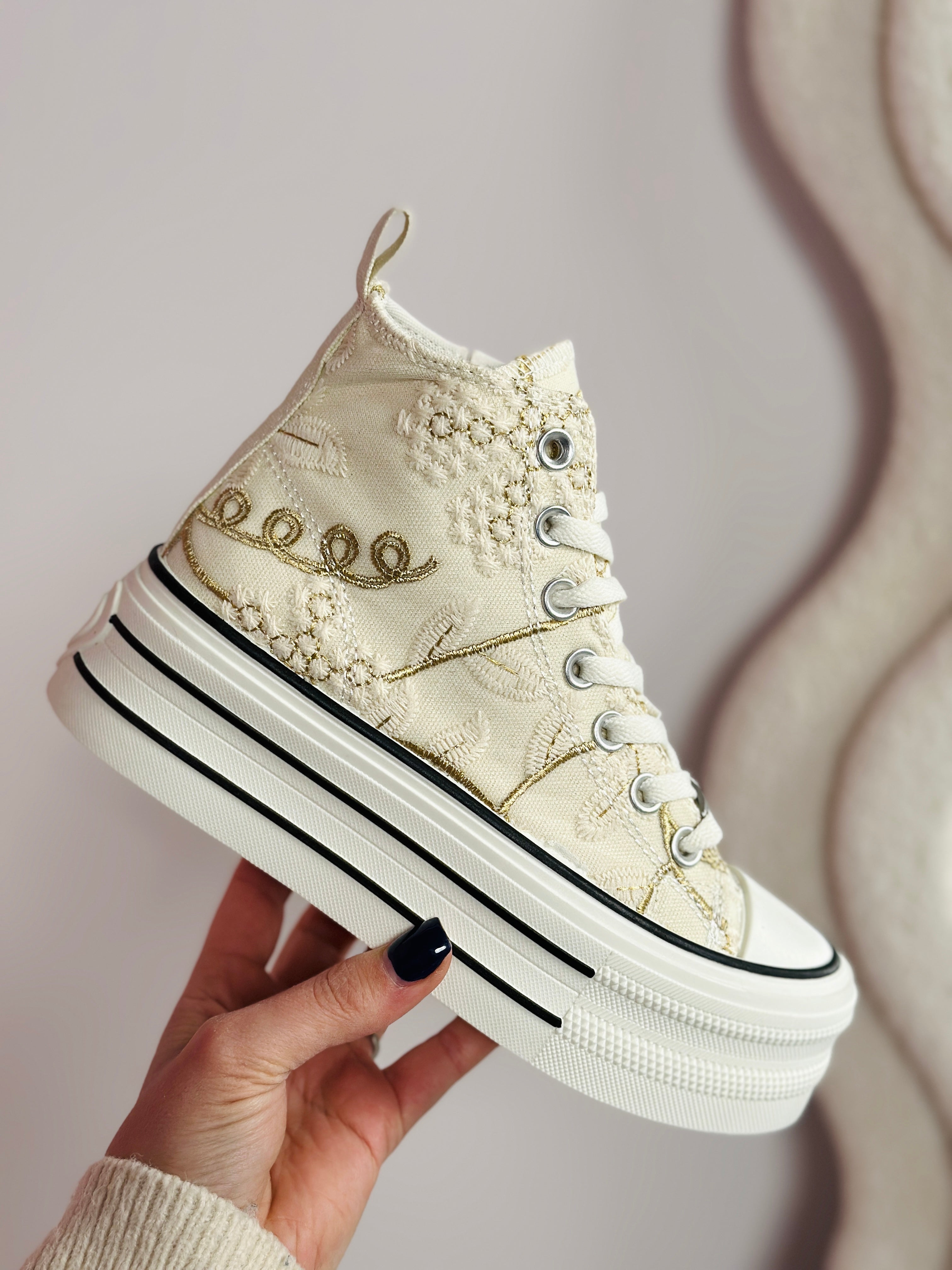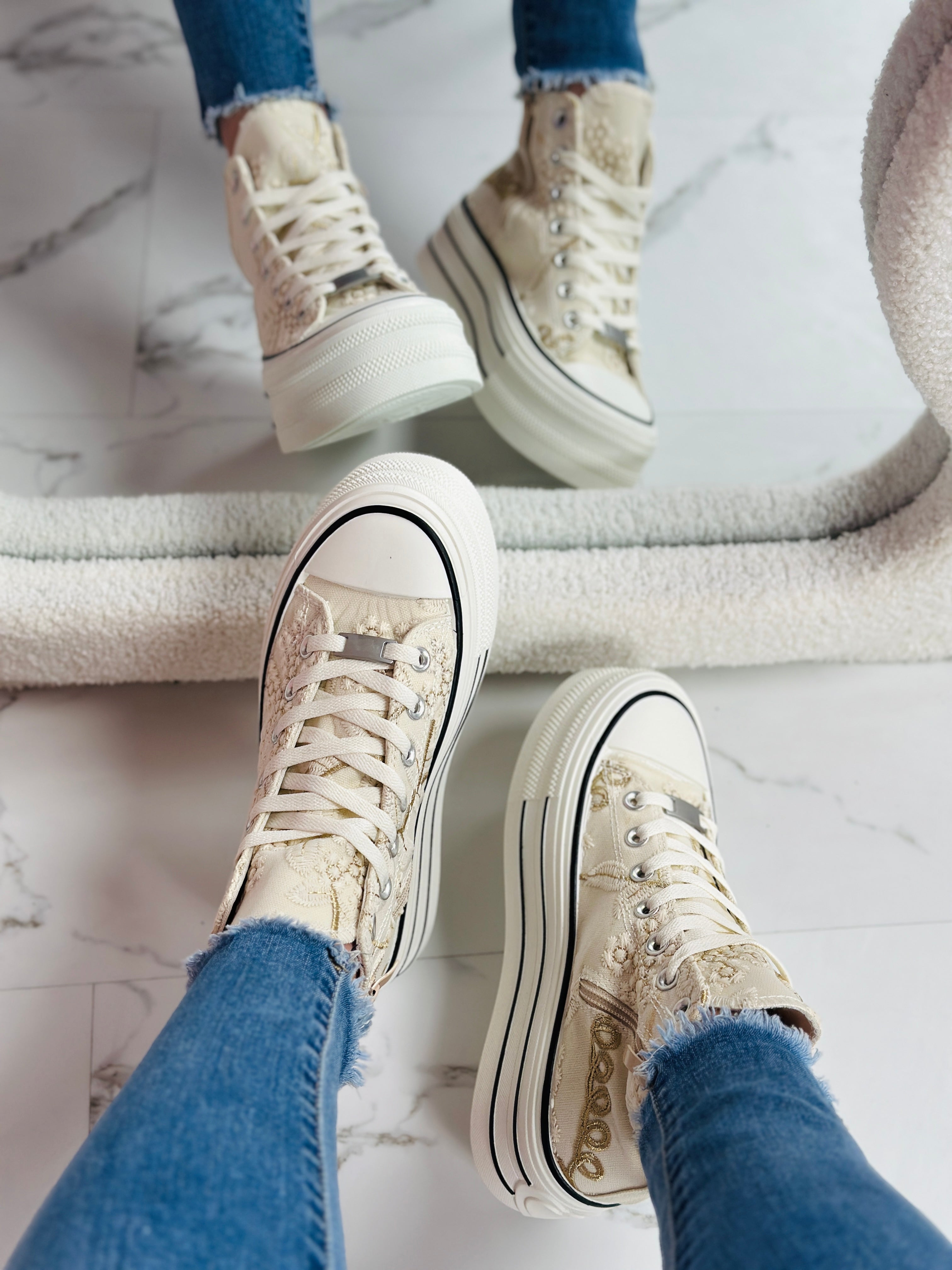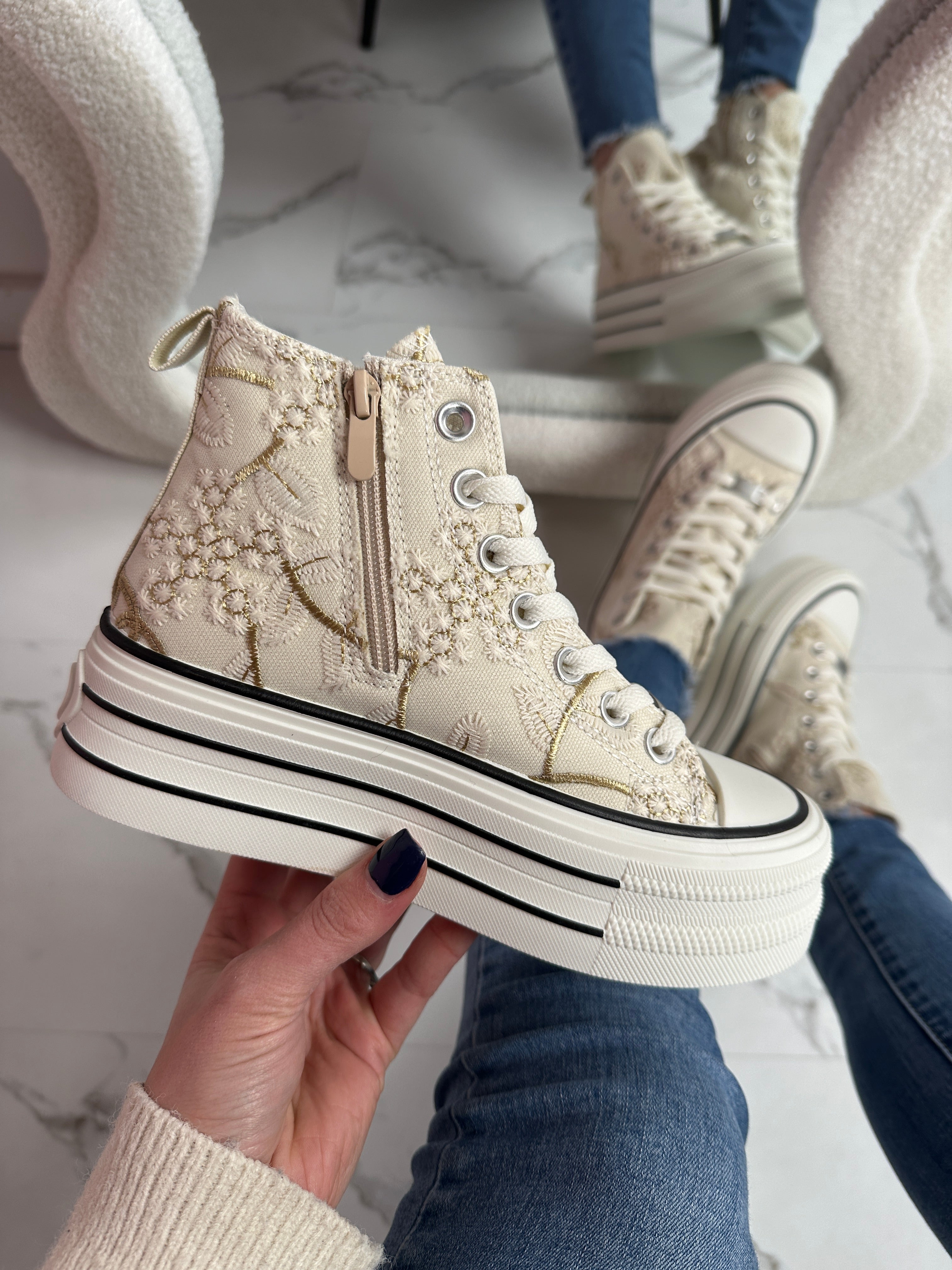 un de nos préférés De jolies baskets hautes avec un superbe imprimé ! ♥ Matériel: Daim ♥ Fermeture : lacets et fermeture éclair ♥ Semelle intérieure amovible ♥ Épaisseur de la semelle : 4 cm