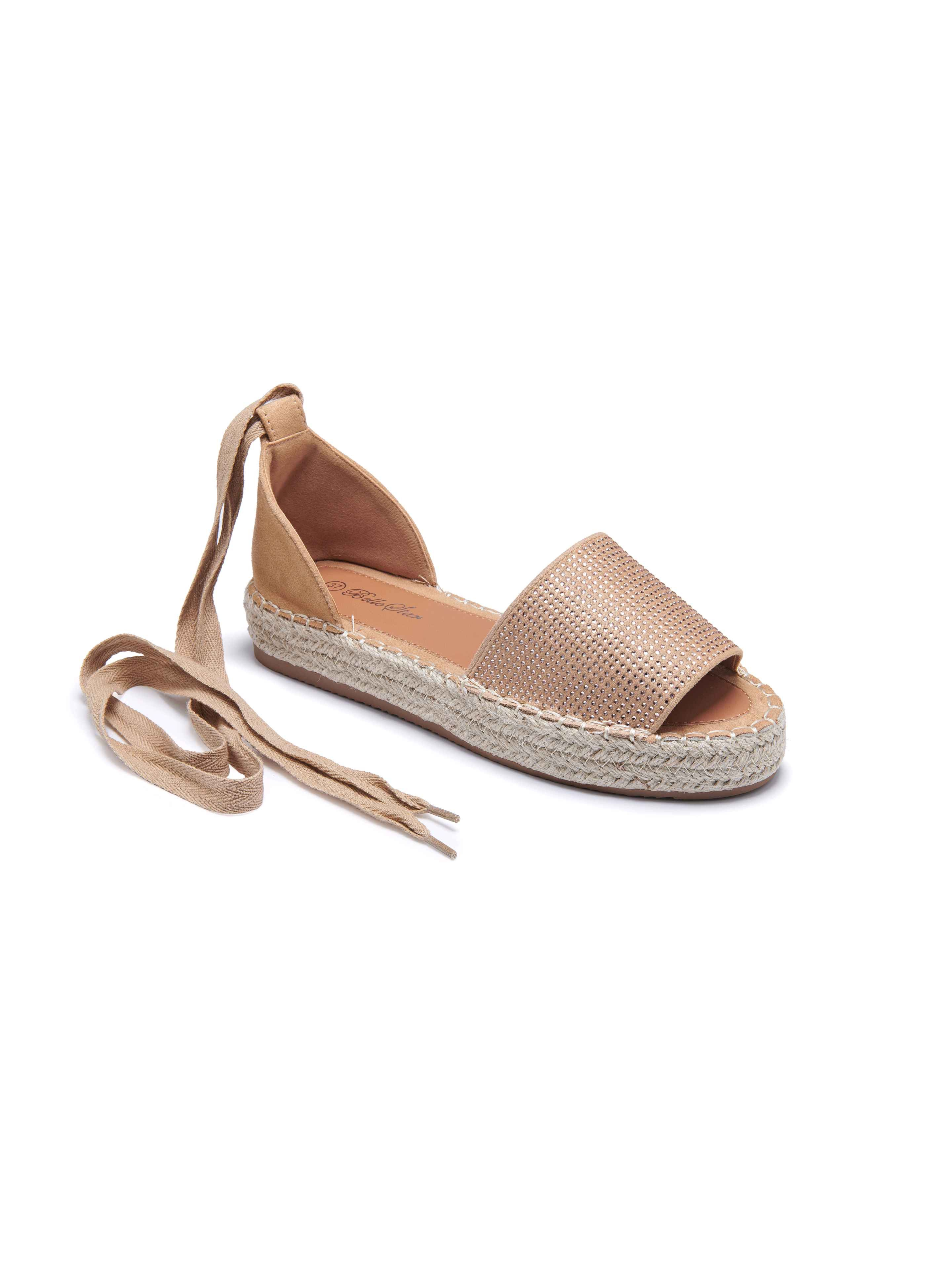La sandale Mylene séduit par son style bohème chic. Sa semelle espadrille assure un bon confort, tandis que le laçage autour de la cheville apporte une touche féminine.