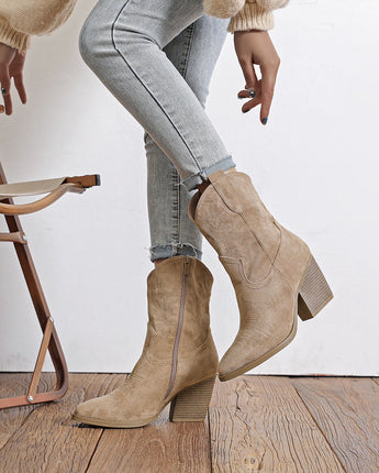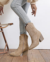 Nos Cowboy Mid Boots apportent instantanément une touche western tendance à votre tenue. Fabriquées en suedine douce, elles allient confort et style intemporel.