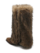 Chaleur, style et vibrations de déclaration - DE Bottes de couverture de fureur Avoir tout. Ces bottes uniques sont complètement recouvertes d'un couvercle en fausse fourrure et fini avec une base en daim. Parfait pour les jours les plus froids et un véritable camion à chaque tenue.