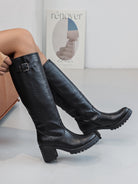 Les Bottes Hautes à Boucle combinent parfaitement élégance et confort. Disponibles en camel doux ou en noir chic, ces bottes montantes rehaussent chaque tenue avec leur boucle réglable, qui permet un ajustement parfait à votre jambe.