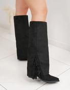 Les bottes Misha allient confort et élégance bohème. Fabriquées en suédine synthétique douce avec un détail à franges sur le côté extérieur. Le talon bloc de 6 cm offre une hauteur idéale tout en restant confortable.