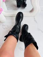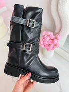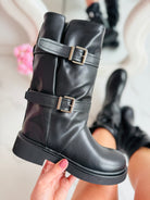 Affirmez votre style avec les Nova Buckle Boots. Ces bottes mi-hautes au design décontracté avec boucles décoratives offrent un look à la fois tendance et confortable. Fabriquées en similicuir souple avec une semelle robuste, elles sont parfaites pour un look casual ou audacieux.