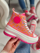 Super beaux baskets Fuchsia Half-High, les détails orange complètent les baskets!