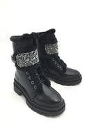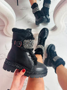 Les Stone Detail Boots ajoutent une touche de glamour à votre tenue d’hiver avec leurs pierres scintillantes et leur doublure en fausse fourrure. Réalisées en cuir PU, elles allient élégance et confort. Dotées de lacets et d’une fermeture éclair, elles sont faciles à enfiler. Le talon robuste de 4 cm offre une légère élévation sans compromettre le confort.