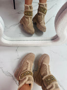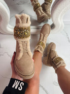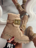 Stone Detail Khaki Boots