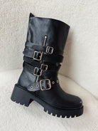 Découvrez vos indispensables mode : les Bottes Tahira Noires. Dotées d’une semelle crantée robuste, de lanières avec boucles argentées et d’une fermeture éclair intérieure pratique, ces bottes associent à merveille style affirmé et confort.