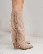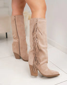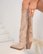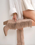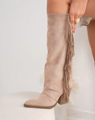 Taupe Bottes Fringle en Suédine à Talon Bloc