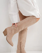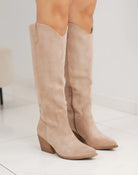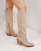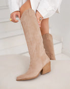 Taupe Bottes Cowboy en Suédine avec Broderies