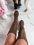 Envie de bottes qui font la différence ? Découvrez les Tonia High Boots – l’équilibre parfait entre audace et élégance. Fabriquées en suedine douce avec détails cloutés et boucle décorative à la cheville, elles apportent du caractère à toutes vos tenues. Le talon bloc offre confort et stabilité tout au long de la journée. Disponibles en noir intemporel et taupe chaleureux.