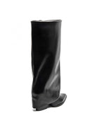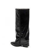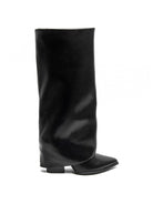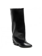 Nos Bottes Vera à Revers sont le parfait mélange de style et de caractère. Ces bottes de haute couture présentent un design pliable remarquable qui tombe élégamment sur la tige, associé à un talon audacieux de 9 cm pour plus de hauteur et d’assurance. Fabriquées en PU leather souple avec une pointe effilée, elles subliment toutes vos tenues.