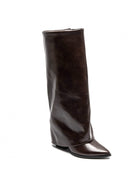 Nos Bottes Vera à Revers sont le parfait mélange de style et de caractère. Ces bottes de haute couture présentent un design pliable remarquable qui tombe élégamment sur la tige, associé à un talon audacieux de 9 cm pour plus de hauteur et d’assurance. Fabriquées en PU leather souple avec une pointe effilée, elles subliment toutes vos tenues.