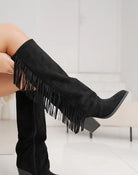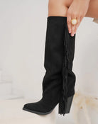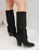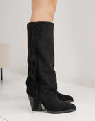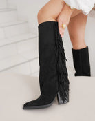 Noir Bottes Fringle en Suédine à Talon Bloc