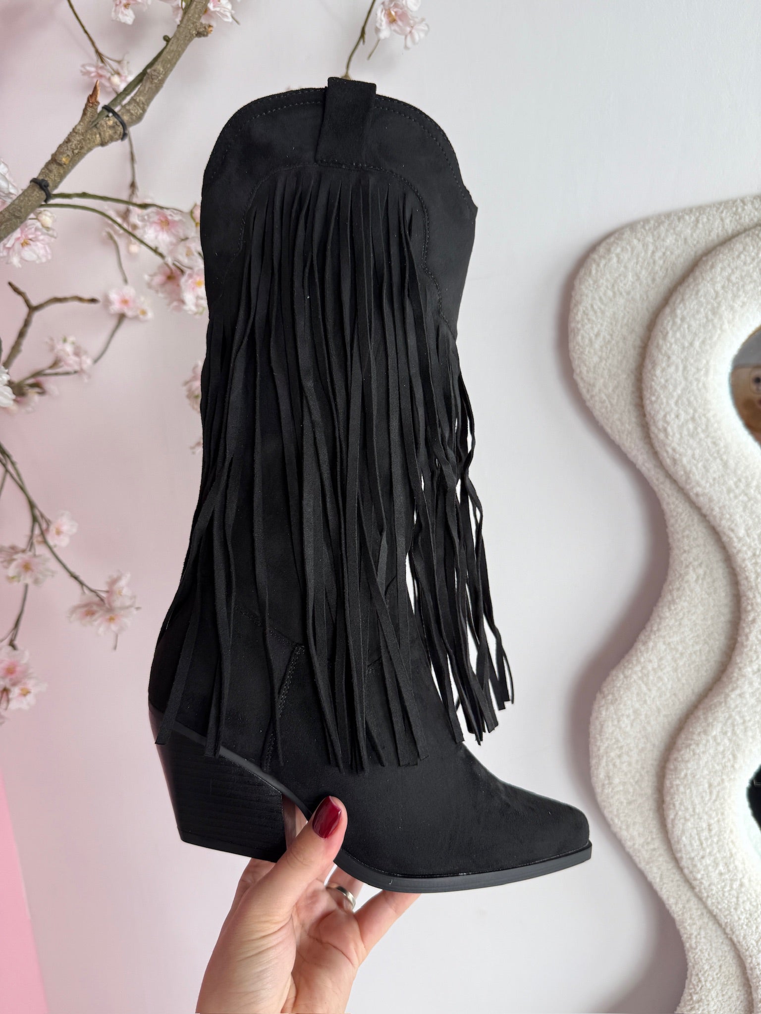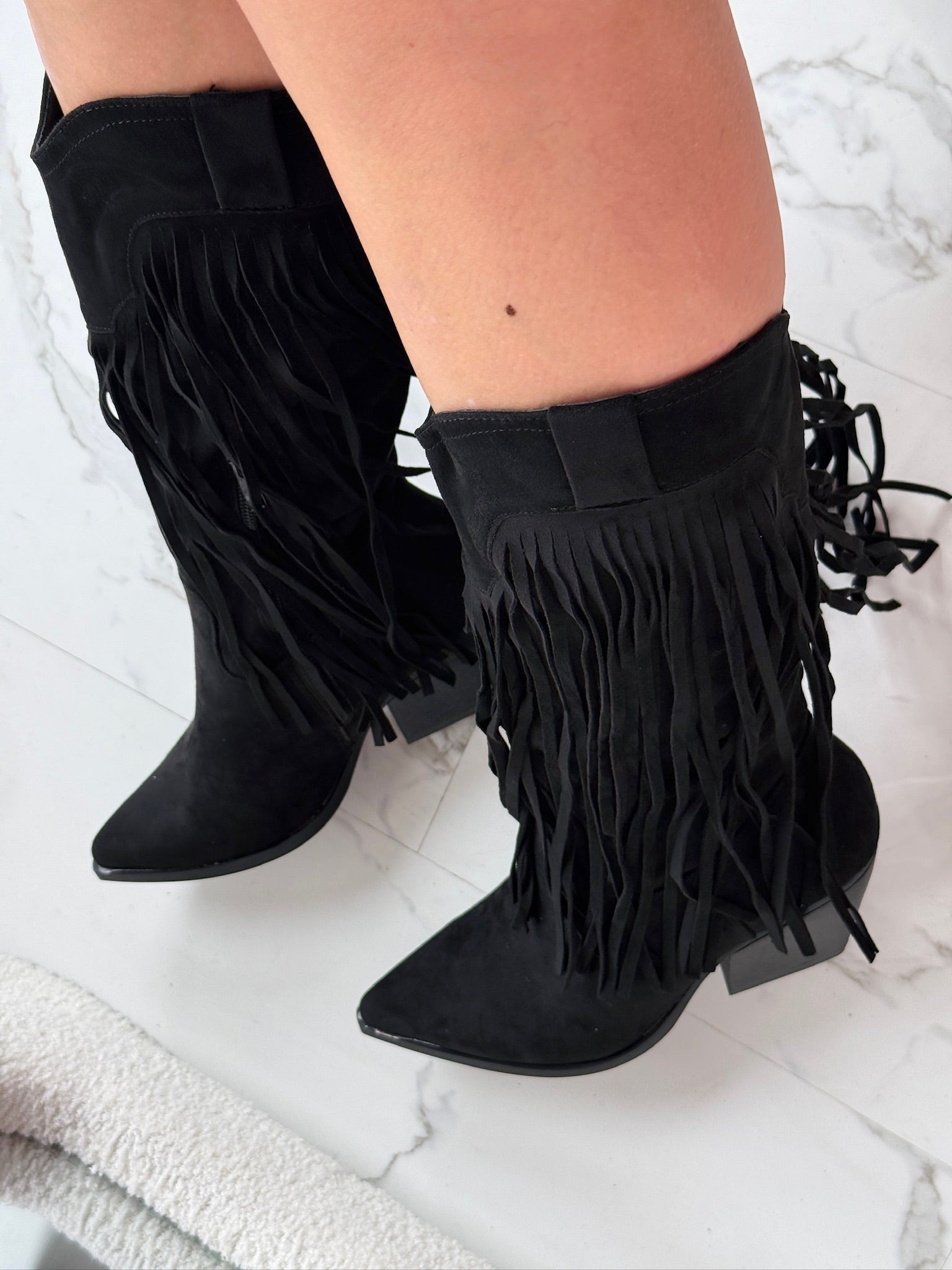 Bottes noires hautes avec des franges