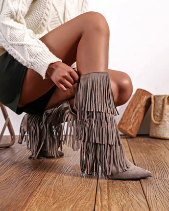 Nos All Fringe Brown Boots apportent une touche western élégante et dynamique à toutes vos tenues. Les franges superposées offrent un effet de mouvement très tendance.