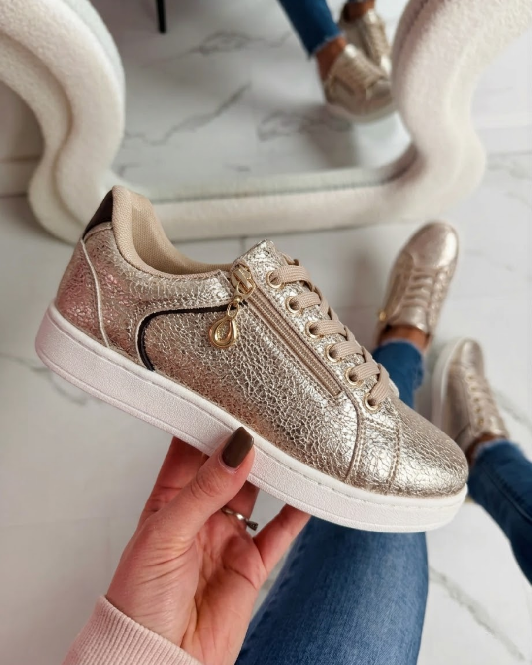 Deze sneakers zijn dé perfecte combinatie van stijl en comfort! Met hun sportieve uitstraling en trendy design passen ze bij elke outfit. Dankzij de stevige zool en het zachte voetbed loop je er de hele dag moeiteloos op. De sneakers zijn voorzien van een echte ritssluiting, hierdoor kan je sneakers gemakkelijk aan en uit trekken!