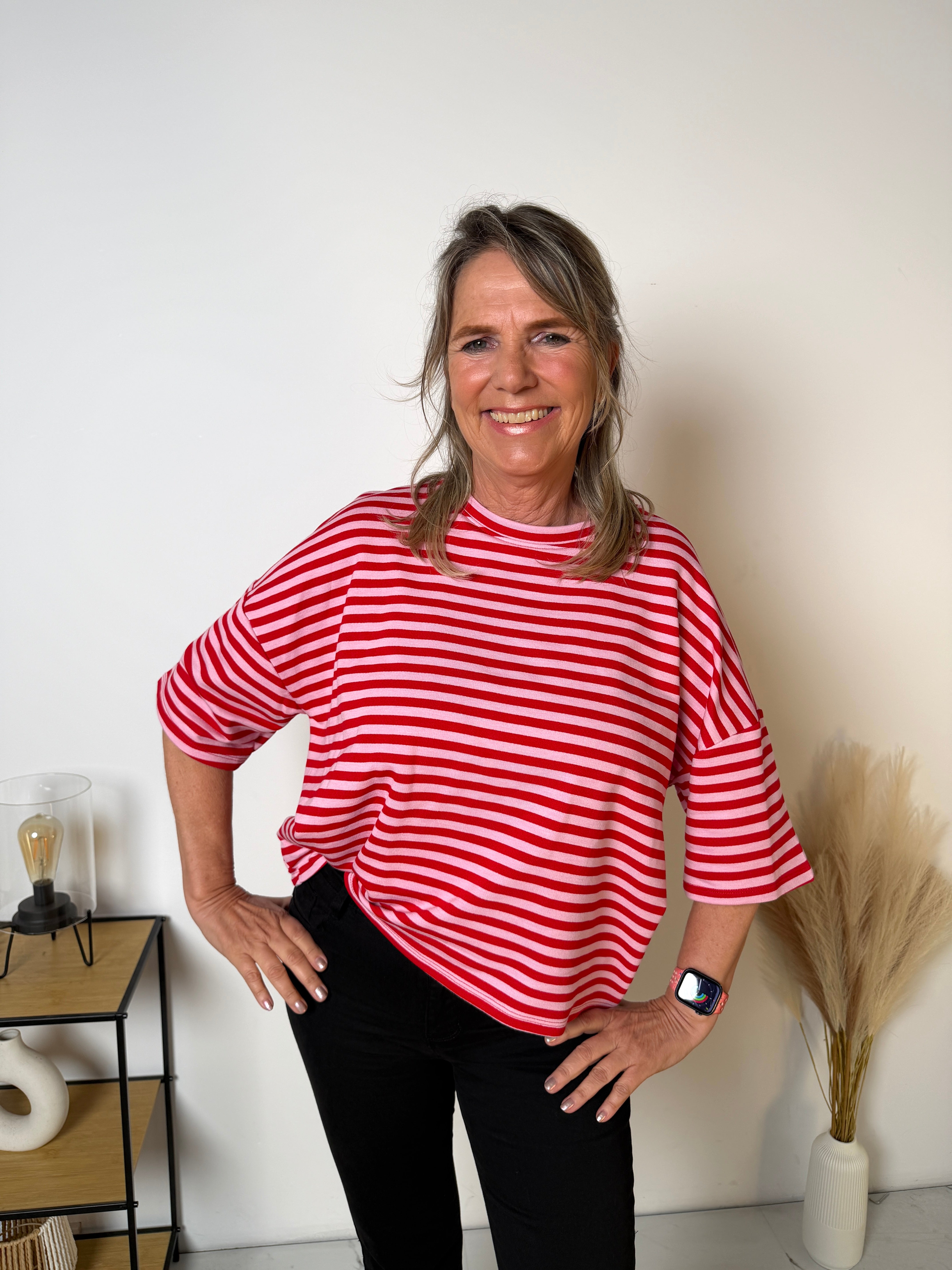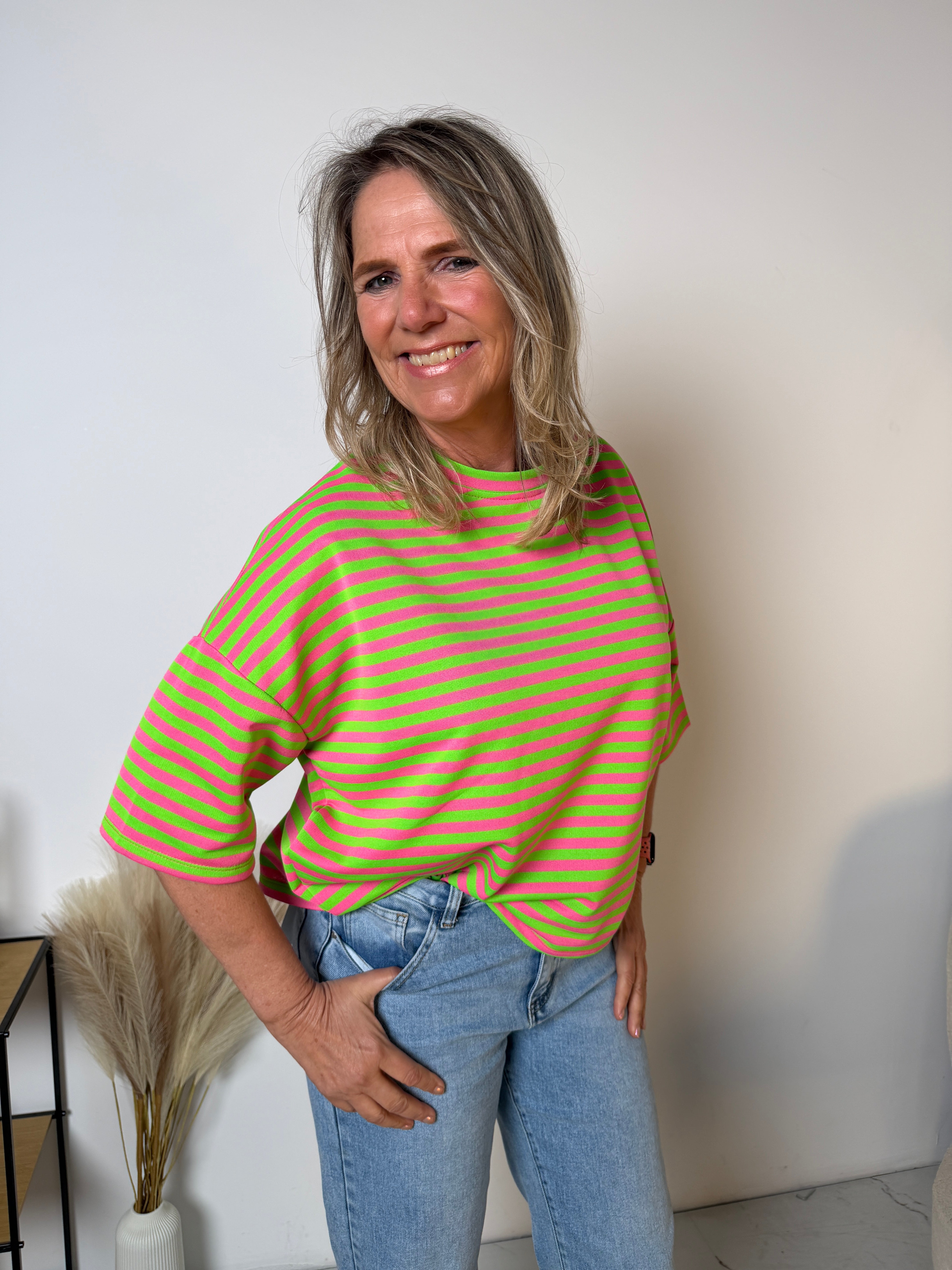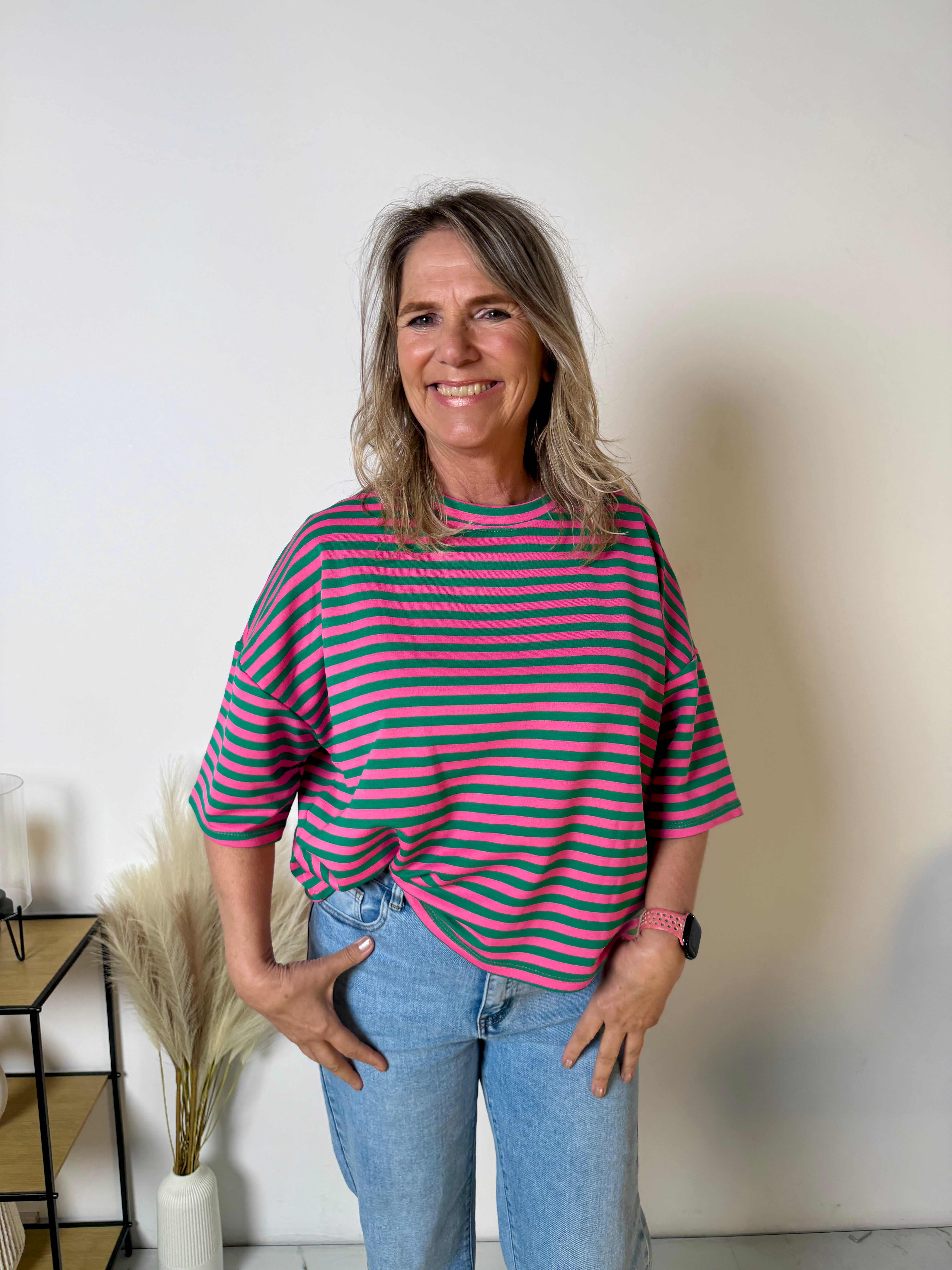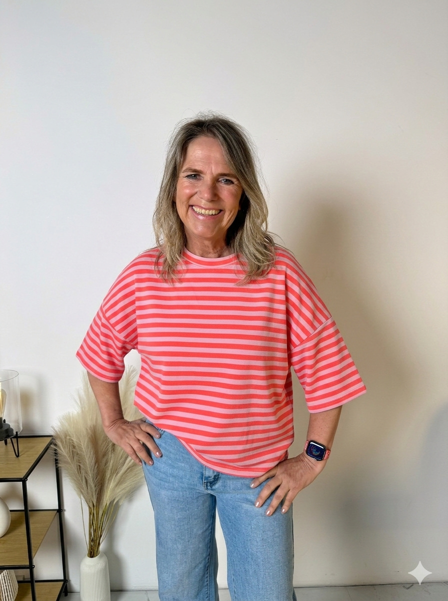 Het Stripe T-shirt is een echte eyecatcher dankzij de frisse streepprint en de trendy loose fit. Dit model combineert comfort met een speelse, moderne uitstraling en is perfect voor een casual maar stijlvolle look.