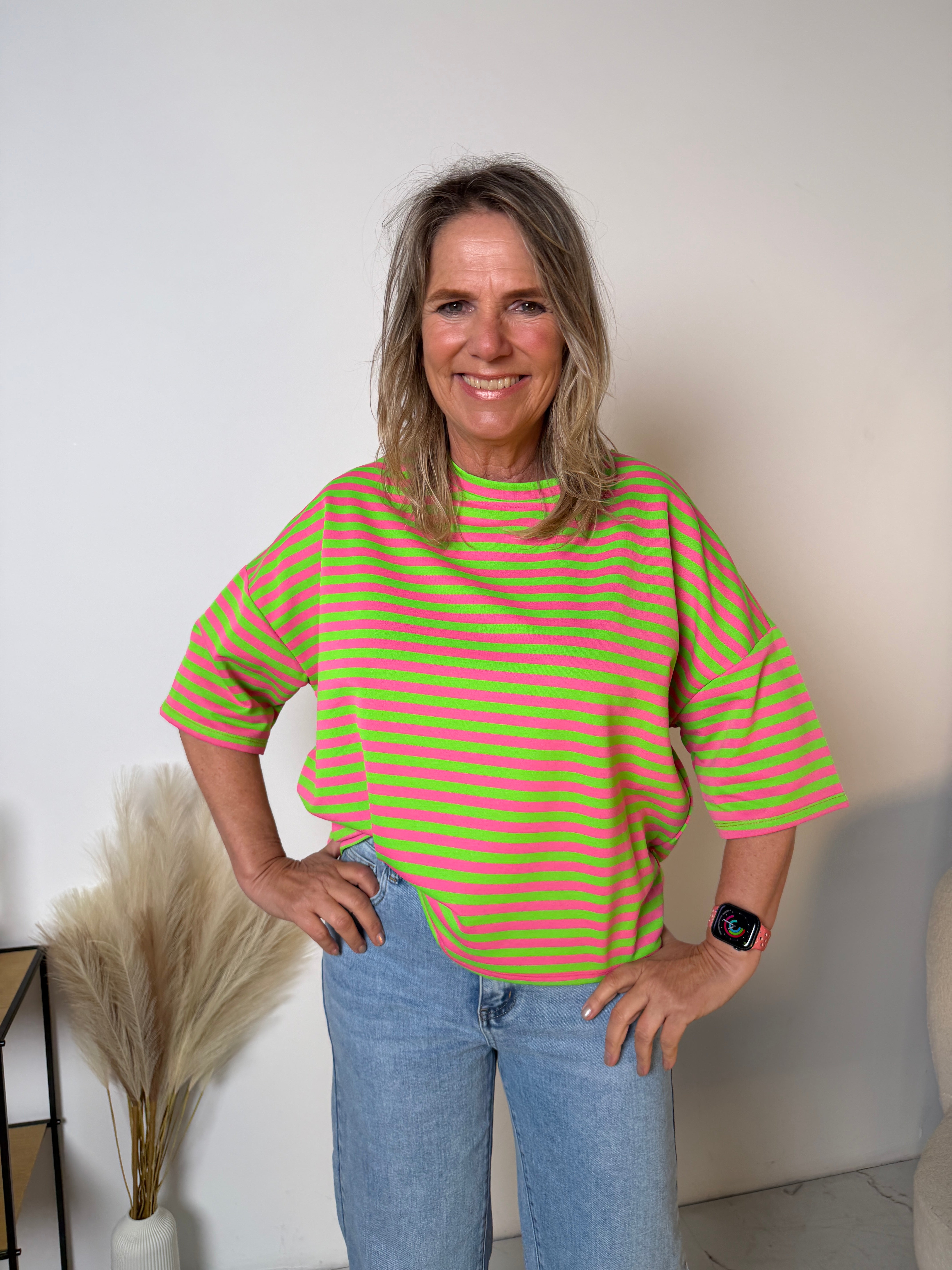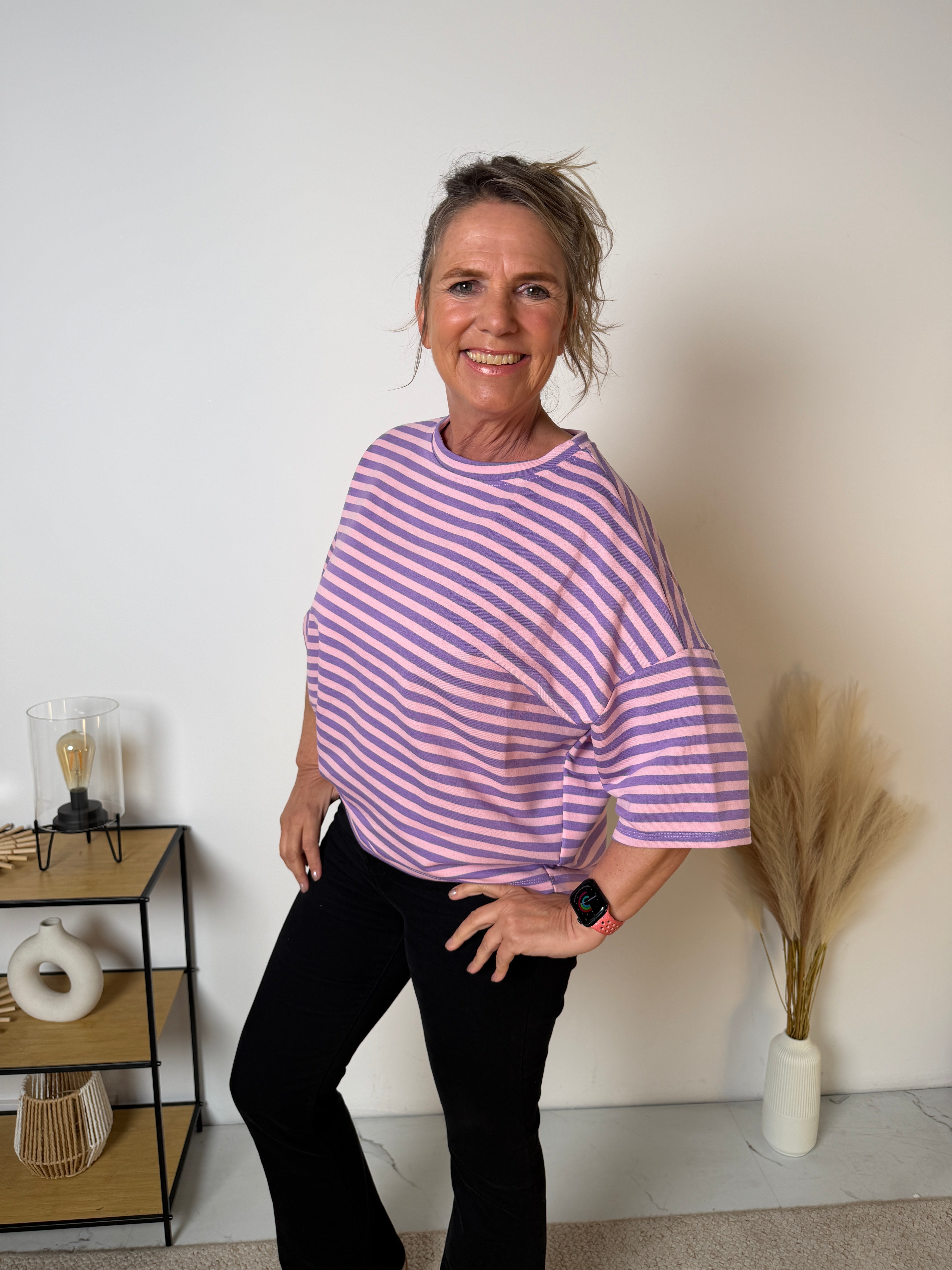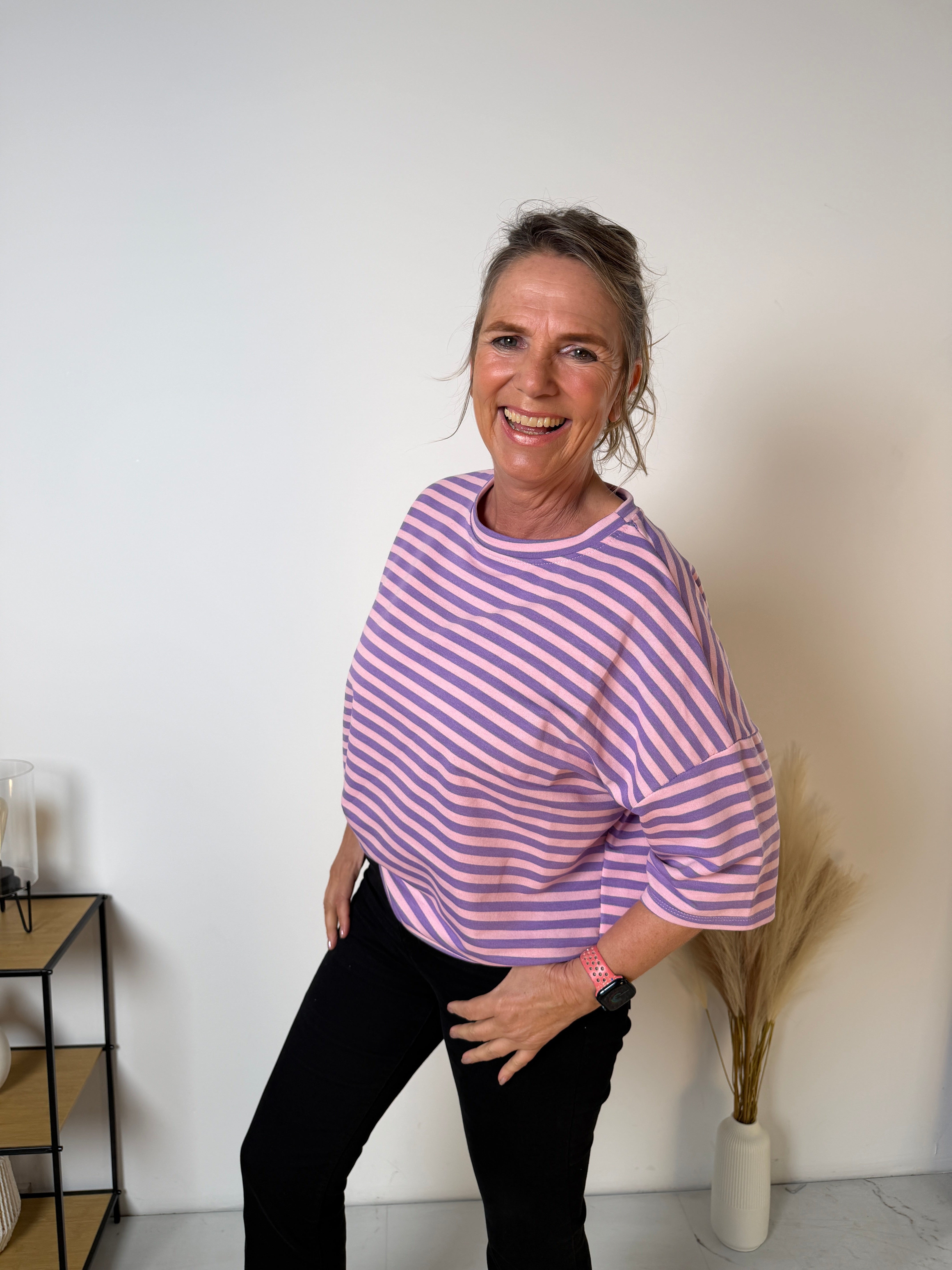 Het Stripe T-shirt is een echte eyecatcher dankzij de frisse streepprint en de trendy loose fit. Dit model combineert comfort met een speelse, moderne uitstraling en is perfect voor een casual maar stijlvolle look.